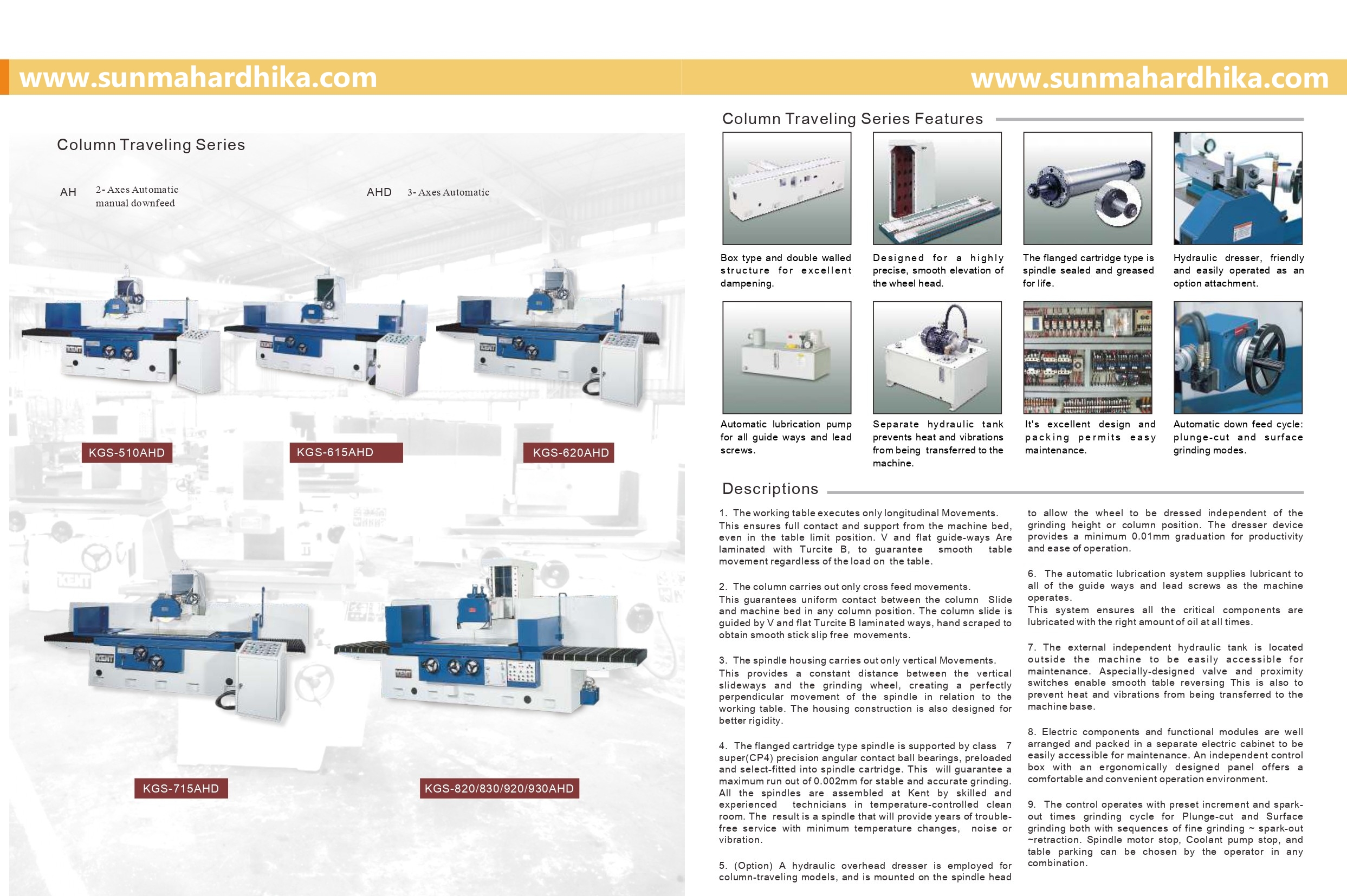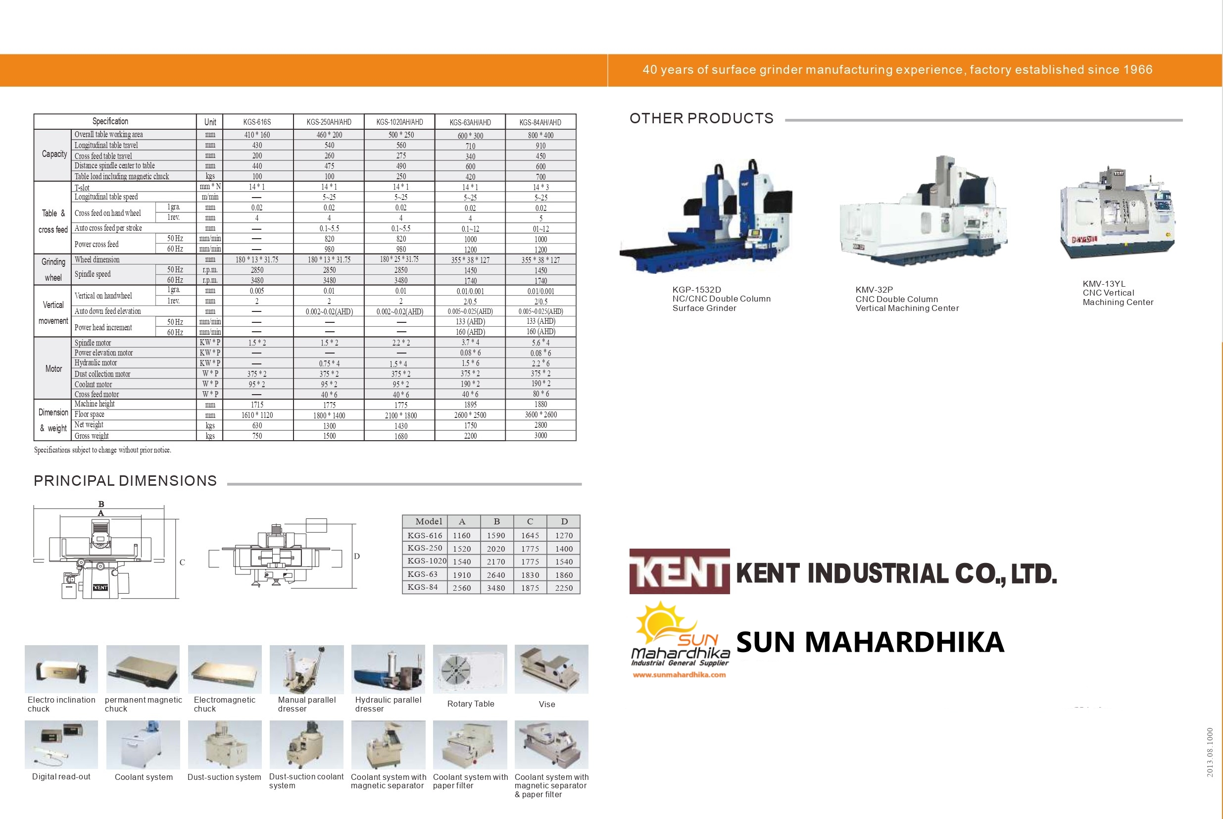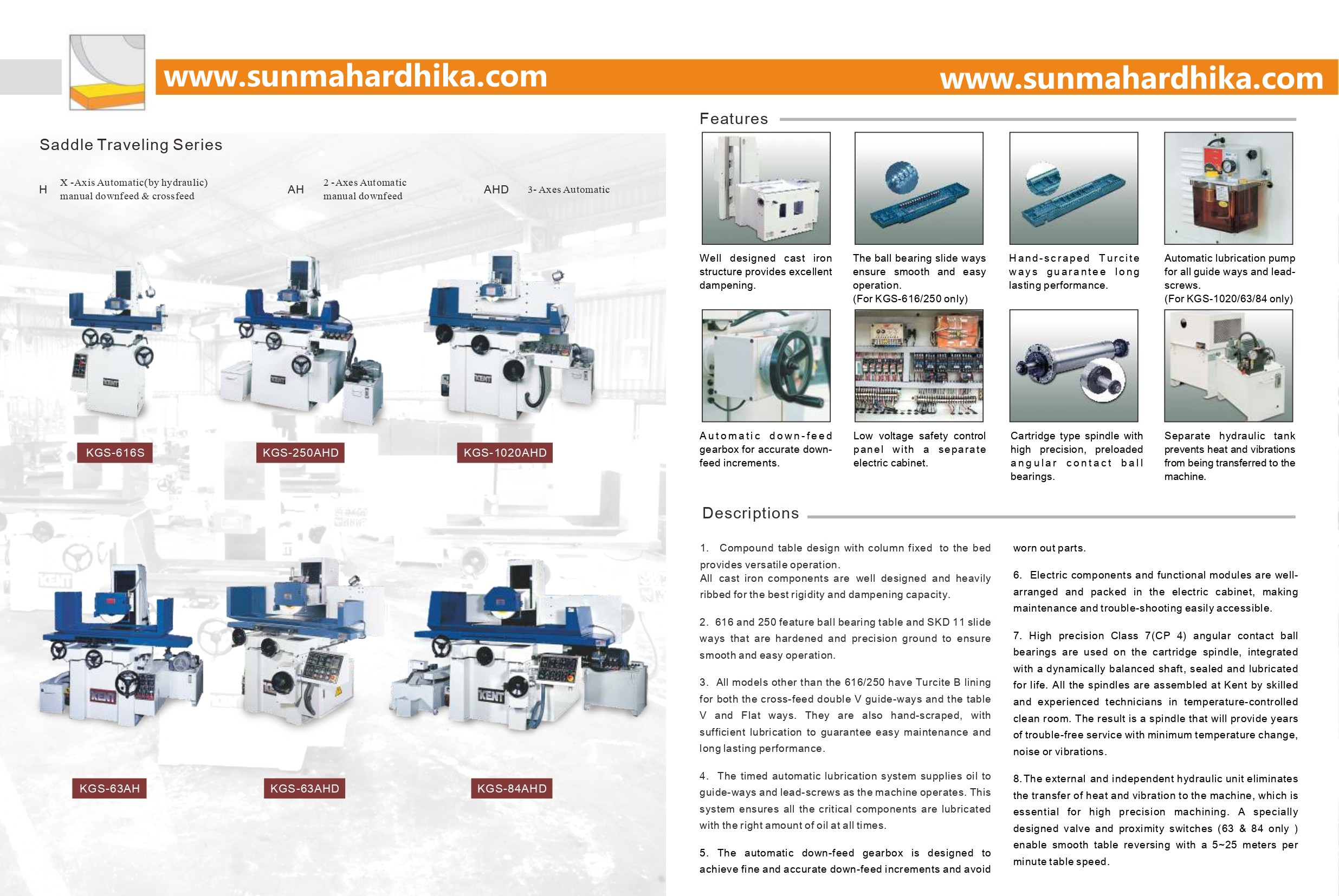 Katalog berbagai varian dari mesin-mesin Surface Grinder. Mulai dari Saddle Traveling Series, hingga Column Traveling Series.